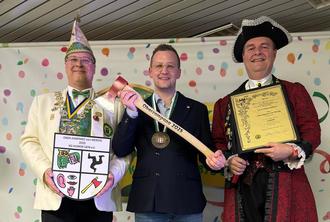 Aus den Händen von Präsident Eric Wagner und Kurfürst Stephan Thräm erhielt Hoffmann die Insignien: seine Ernennungsurkunde, das Vereinswappen und die „Bondaxt“.