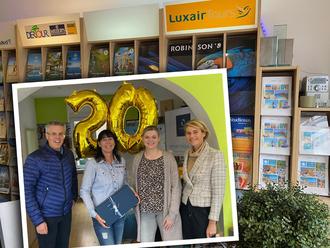 Anlässlich des Jubiläums besuchten Oberbürgermeister Marcus Hoffeld und Nadja Pastorcic von der Wirtschaftsförderung das Reisebüro am Kirchplatz in Merzig.