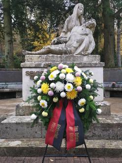 Im Anschluss an die Gedenkfeier fand die traditionelle Kranzniederlegung am Gefallenenehrenmal des Friedhofs statt. Der Marsch zum Ehrenmal wurde musikalisch durch Michael Friedrich an der Trompete mit dem Stück „Der gute Kamerad“ begleitet.