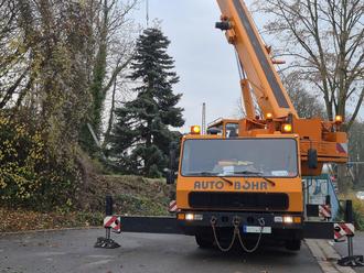 Nach dem Fällen des ca. 15 Meter hohen Baumes in Besseringen wurde er neben dem Pumphaus an der Bahnbrücke platziert und von den Mitarbeiterinnen und Mitarbeiter des städtischen Baubetriebshof zu diesem Zweck vorbereitet. Dabei konnte sich die Stadt auch in diesem Jahr über die wichtige Hilfe der Auto Bohr GmbH freuen, die traditionell beim Aufbau und beim späteren Abbau des Baumes ihre kostenlose Unterstützung leistet.