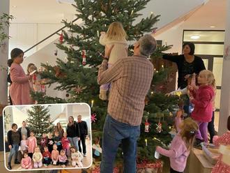 Fröhliches Kinderlachen hallte am vergangenen Freitag durch das Neue Rathaus. Die Kinder der Kita Seitert waren zu Gast, um dem Tannenbaum im Erdgeschoss einen weihnachtlichen Glanz zu verleihen. Gemeinsam mit ihren Erzieherinnen hatten sie in den letzten Wochen liebevoll Nikoläuse und Rentiere aus Toilettenpapier-Rollen und buntem Tonpapier gebastelt oder Sterne aus Holzspateln angemalt.