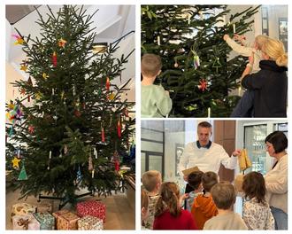 Am vergangenen Freitag waren die Kinder der Kita Besseringen zu Gast im Neuen Rathaus, um dem Tannenbaum im Erdgeschoss einen festlichen Glanz zu verleihen. In den Wochen zuvor hatten die Kinder gemeinsam mit ihren Erzieherinnen liebevoll weihnachtliche Dekoration gebastelt, die sie mit großer Freude und Begeisterung am Baum anbrachten.