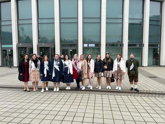 Die ereignisreichen Tage begannen für Lea I., ihre Prinzessinnen Jule und Laila sowie Linsenkönigin Matthias I. und die Brotdorfer Freeschenkönigin Tina I. mit einem Besuch des Bundestags. Auf Einladung von Markus Uhl, MdB, hatte die saarländische Delegation dabei die Gelegenheit, die Rede ihrer Ministerpräsidentin Anke Rehlinger zur deutsch-französischen Freundschaft zu hören und an einer Führung durch das Reichstagsgebäude teilzunehmen.