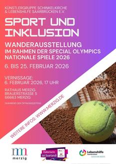 Die Kreisstadt Merzig präsentiert vom 06.02.2026 bis zum 25.02.2026 erstmalig im Saarland die inklusive Wanderausstellung der Künstlergruppe Schinkelkirche aus Bischmisheim zusammen mit der Lebenshilfe Saarbrücken im Rahmen der „Special Olympics Nationalen Spiele Saarland 2026“ im Neuen Rathaus. Die Wanderausstellung im Februar trägt den Titel „Sport und Inklusion“. Gezeigt werden rund 40 Gemälde, Bilder und Fotografien, die sowohl die Künstler der Künstlergruppe Schinkelkirche Bischmisheim als auch Mitglieder der Lebenshilfe Saarbrücken geschaffen haben.