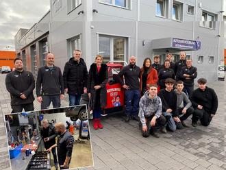 „Wir sind auch ein Ausbildungsbetrieb und beschäftigen mehrere Jahrespraktikanten der zweijährigen Berufsfachschule Technik. Zu meinem Team gehören neben meiner Ehefrau zwei Mitarbeiter im Frontoffice, drei Gesellen, drei Auszubildende sowie ein Techniker, ein Meister und eine Reinigungskraft.“, erklärt der Chef der Werkstatt.