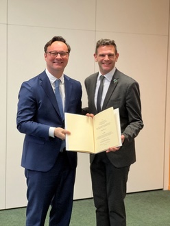 So konnte Bürgermeister Daniel Kiefer noch kurz vor Weihnachten den Förderbescheid von 3,1 Mio. € aus den Händen von Bundesstaatssekretär Oliver Luksic in Empfang nehmen und ist sich sicher: „Durch die intelligente Verzahnung von marktwirtschaftlichem Gigabitausbau und dieser Förderung sind die Kommunen nun in die Lage versetzt, eine echte Flächendeckung mit gigabitfähigen Datennetzen zu erreichen. Damit schaffen wir optimale Voraussetzungen für gleichwertige Lebensverhältnisse auch in unserer ländlich geprägten Region und bieten unseren Bürgerinnen und Bürgern, aber auch allen Unternehmen, einen echten Mehrwert für ihre Immobilien.“