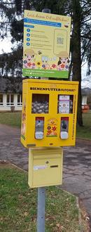 Die gelben Automaten in der sind Teil eines bundesweiten Netzwerks aus über 200 Standorten, die von Vereinen, Schulen, Kommunen, Unternehmen oder Privatpersonen mit viel Engagement betrieben werden. Entstanden ist die Initiative der Bienenfutterautomaten 2019 aus einer Idee des Handwerkmeisters Everding und der Aktion ‘Lass deinen Ort aufblühen!’ des Frankfurter Bildungsprojekts ‘Bienenretter’. Als Kooperationspartner stellt das Sozialunternehmen ‘Bienenretter Manufaktur’ das Füllmaterial mit heimischen Pflanzen zum Selbstkostenpreis zur Verfügung. Vom Verkauf jeder Kapsel geht ein Förderbeitrag an die Bienenretter Bildungsarbeit.