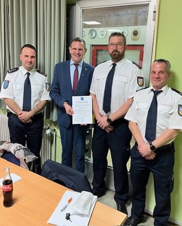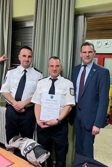 Bürgermeister Daniel Kiefer gratulierte dem neuen Löschbezirksführer Frank Hausen und seinen Stellvertretern Peter Klein und Daniel Klein und wünschte ihnen viel Erfolg bei der Ausübung der verantwortungsvollen Aufgabe. Ortsvorsteher Christian Stutz und Wehrführer Christian Thul schlossen sich den Wünschen des Bürgermeisters an.