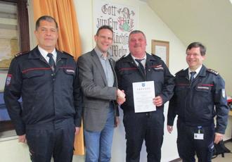 Der Bürgermeister gratulierte Herrn Neises und wünschte ihm weiterhin viel Erfolg bei der Ausübung seiner verantwortungsvollen Aufgabe. Wehrführer Thomas Jager und Löschbezirksführer Martin Peter schlossen sich den Wünschen des Bürgermeisters an.