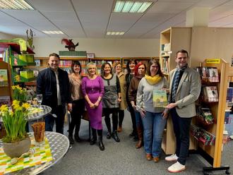 Bürgermeister Daniel Kiefer bedankte sich in seiner kleinen Ansprache bei dem sehr rührigen Team der KÖB St. Nikolaus, die schon über viele Jahre dieses Angebot ehrenamtlich für Jung bis Alt bereithalten und somit einen aktiven Beitrag zum Dorfgeschehen leisten. Der Verwaltungschef betonte aber auch, wie wichtig dieses Angebot gerade für junge Menschen ist, damit diese auch im digitalen Zeitalter weiterhin ans Lesen herangeführt werden. Neben einer kleinen Geldspende überreichte Bürgermeister Kiefer dem Team auch 2 Exemplare des Buches „Spielplatzalarm in Mettlach: Nils, Ella und ihre Freunde reden mit“, welches junge Menschen dazu ermutigen soll, sich in den Gemeinden zu engagieren und zu beteiligen.