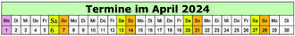 | 15.04. | Montags-Kaffeenachmittag | Heimat- und Kulturverein Tünsdorf |