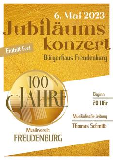 Liebe Musikfreunde, der Musikverein 1923 Freudenburg startet am 06. Mai 2023 mit seinem Jahreskonzert in sein 100-jähriges Jubiläumsjahr und lädt Sie recht herzlich um 20.00 Uhr in das Bürgerhaus in Freudenburg ein bei freiem Eintritt. Die Musiker und Musikerinnen haben sich in vielen Proben und an einem Probewochenende intensiv auf dieses Konzert vorbereitet, auch hat unser musikalischer Leiter und Dirigent Thomas Schmitt ein abwechslungsreiches Programm zusammengestellt. Feiern Sie mit uns unseren 100. Geburtstag und lassen sich an diesem Abend verzaubern von musikalischer Vielfalt.