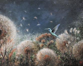 Während er früher eher Motive ohne Figuren malte, findet er es heute sehr interessant, Menschen, Tiere, Flugzeuge oder Erfundenes in seine Bilder einzubinden.