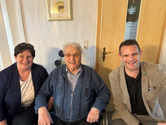 Bürgermeister Daniel Kiefer und die stellvertretene Ortsvorsteherin Marietta Schmitz gratulierten dem Jubilar im Namen der Gemeinde und des Ortsteiles Orscholz.