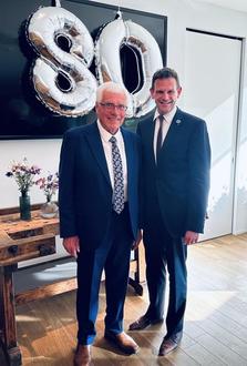 Am Samstag, dem 11.05.2024 beging Altbürgermeister Manfred Zimmer seinen 80. Geburtstag. Zu diesem besonderen Anlass überbrachte der amtierende Bürgermeister Daniel Kiefer persönlich seine Glückwünsche und die besten Wünsche der gesamten Gemeinde, sowie aller Kolleginnen und Kollegen der Verwaltung.