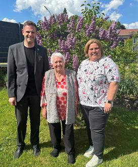 Bürgermeister Daniel Kiefer überbrachte der Jubilarin persönlich, gemeinsam mit der Ortsvorsteherin Silke Brausch, die Glückwünsche der Gemeinde und des Ortsteils Orscholz.