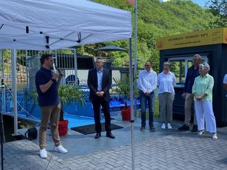Bei herrlichem Frühsommerwetter konnten die beiden Unternehmer, Franz Wirth und Matthias Schmitt von der Firma Delphin Tec, mit zahlreichen Gästen, darunter Vertreter der beteiligten Behörden auf Gemeinde-, Landkreis- und Ministeriumsebene ihr touristisches Projekt feierlich vorstellen und übergeben.
