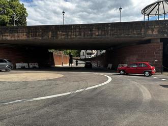 Nach dem Pfingsthochwasser musste der neuralgische Verkehrsknotenpunkt auf Grund unterspülter Fahrbahn gesperrt werden. Unter Hochdruck hat anschließend der Landesbetrieb für Straßenbau (LfS) mit seinen Rahmenvertragspartnern die Schäden schnellstmöglich beseitigt und so wieder für eine schnelle Entlastung der Umfahrungsstraßen gesorgt. Ursprünglich war man von einem Kanalbruch ausgegangen, der sich dann bei den näheren Prüfungen nicht bewahrheitet hat und eine mindestens halbjährige Sperrung mit sich gezogen hätte.