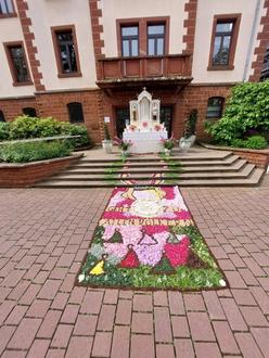 Altar mit Blumenteppich vor dem Rathaus
