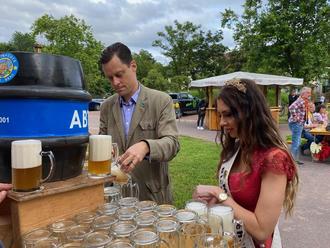 Besonderes Augenmerk galt beim Fassbieranstich dem Schirmherrn, Felix Graf von Hardberg. Mit zwei gekonnten Schlägen hat er das Fass angeschlagen und mit der Mettlacher Bierkönigin Anni die Gläser gefüllt.