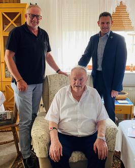 Der stellvertretende Ortsvorsteher Frank Reinert überbrachte gemeinsam mit Bürgermeister Daniel Kiefer dem Jubilar die Glückwünsche der Gemeinde und des Ortsteiles Weiten.