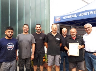 Am vergangenen Montag gratulierte der 1. Beigeordnete der Gemeinde Mettlach Rainer Borens den beiden Geschäftsführern der KFZ-Technik Steuer & Karthein GmbH, Michael Karthein und Andreas Steuer, zum 25-jähigen Firmenjubiläum. Der KFZ-Reparaturbetrieb wurde vor 25 Jahren in Mettlach, Am Ziegelberg 4 in den ehemaligen Gebäuden der Firma Villeroy und Boch eröffnet und anschließend kontinuierlich erweitert.