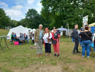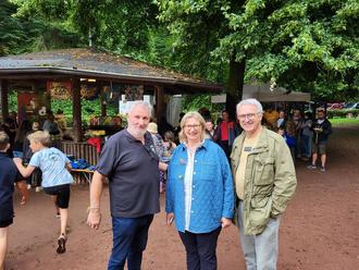 Zeltlager des Jugendforums Mettlach: Günther "Schlappo" Leinen, Anke Rehlinger (Ministerpräsidentin des Saarlandes), Rainer Borens (Erster Beigeordneter)