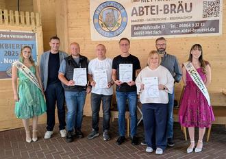 Bürgermeister Daniel Kiefer beglückwünschte im Beisein der Bierkönigin Lea mit Bierprinzessin Jasmin die Gewinnerteams