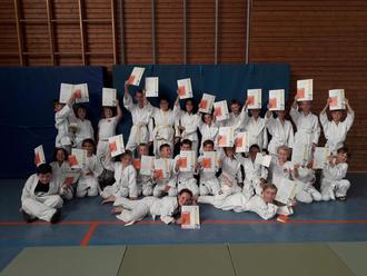 Die Kinder zeigten eindrucksvoll, dass sie in den letzten Monaten an einer sauberen Ausführung der Bewegungsschule, Fallschule, Atemtechniken, Würfe und Bodentechniken gefeilt hatten.