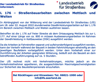 Bei Rückfragen und Hinweisen: Tel. 06821-1000 oder info@lfs.saarland.de