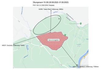Das Übungslager wird östlich der Ortschaft Weiten durchgeführt werden (siehe Anlage).