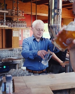 Zum Abschluss seines Besuches krempelte Barke dann auch noch selbst die Ärmel hoch und ließ sich unter Anleitung der Brauerei-Geschäftsführerin in die Arbeit hinter der Theke einweisen, um einen persönlichen Einblick in das Arbeitsfeld zu erlangen.