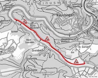 Die Umleitungsstrecke betrifft den Abschnitt von der inneren Saarschleife auf Höhe der Fähre Welles bis zur Kreuzung der Strecke mit dem Kreuzweg. Dieser Streckenabschnitt wurde durch starke Regenereignisse und Unwetter in den vergangenen Wochen stark in Mitleidenschaft gezogen, so dass zunächst Instandsetzungsarbeiten durchzuführen sind, um die Sicherheit für Radfahrer und Fußgänger zu gewährleisten. Es werden insgesamt rund 700 Meter Waldwege in einzelnen Teilabschnitten ertüchtigt.