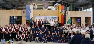 Nach der Einsegnung des Hauses durch Pfarrerin Andrea Zarpentin und Diakon Michael Schuh durften Löschbezirksführer Dirk Schulze und – stellvertretend für die Vereine – der 1. Vorsitzende des Musikvereins, Ralf Bauer, den symbolischen Schlüssel zu ihren Räumlichkeiten entgegennehmen.