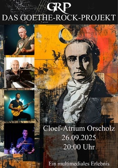 GRP, das Goethe-Rock-Projekt, lädt Musikliebhaber und Literaturbegeisterte zu einer einzigartigen, audiovisuellen Erfahrung ein, die von den zeitlosen Gedichten Johann Wolfgang von Goethes inspiriert ist. Mit einer spektakulären Multimedia-Show entführt die Band ihr Publikum in die Welt des deutschen Dichters und Denkers und lässt seine Worte durch elektrisierende Rockmusik neu erstrahlen.