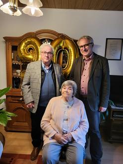 Foto: Ortsvorsteher Heiner Thul, Jubilarin Elisabeth Dauster, 2. Beigeordneter Rainer Borens