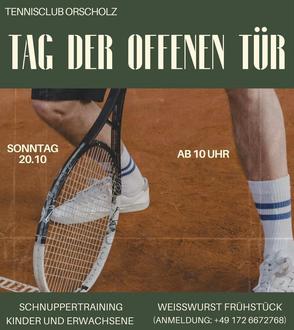 Am Sonntag 20.10. findet bei uns auf der Anlage ein „Tag der offenen Tür“ statt. Ab 10 Uhr laden wir ein, um euch den tollen Sport Tennis näherzubringen. Ob Jugendlicher oder Erwachsener bei uns ist JEDER herzlich willkommen. Außerdem bieten wir an diesem Tag ein Weißwurstfrühstück an. Zwecks Planung bitten wir um Anmeldung oder bei Rückfragen telefonisch oder WhatsApp unter der 0172-6672768 Wir freuen uns auf einen tollen Tag Platzschliessung Am Samstag den 26.10. um 9:00 Uhr Bitte um pünktliches und zahlreiches erscheinen. Für essen und trinken ist bestens gesorgt. Viele Hände, schnelles Ende :)