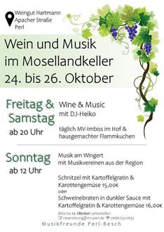 Bald ist es soweit! Am 24.10.2025 öffnen wir wieder die Türen zum Mosellandkeller. Wir haben wieder ein tolles Programm für alle bereit. Essen, trinken, tanzen, Musik hören, es ist für jeden etwas dabei. Am Freitag und Samstag gibt es wieder jede Menge Stimmung, Wine & Music mit DJ Heiko.