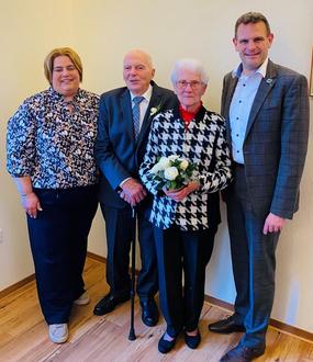 Im Auftrag von Ministerpräsidentin Anke Rehlinger überreichte Bürgermeister Kiefer dem Jubelpaar ein Ehrengeschenk. Landrätin Daniela Schlegel-Friedrich gratulierte schriftlich.
