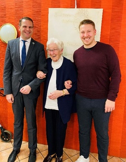 Bürgermeister Daniel Kiefer sowie der Orscholzer Ortsvorsteher Manuel Kerber gratulierten der Jubilarin persönlich und überbrachten die Glückwünsche der Gemeinde Mettlach und des Ortsteiles Orscholz.