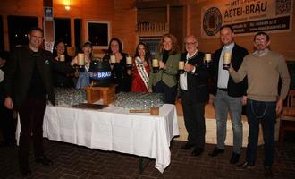 Im Anschluss an die kirchliche Feier trafen sich die Gäste in der Abtei-Brauerei Mettlach, um mit dem speziell zu diesem Anlass gebrauten Hubertus-Bockbier auf das Hubertusfest anzustoßen. Jagdvorsteher Kiefer dankte Anke Schorn, von der Abtei-Brauerei mit ihrem Braumeister, für ihr speziell für diesen Tag gebrautes „Hubertus-Bockbier“ bevor der gemeinsam mit der Bierkönigin Anni und deren Prinzessin Lea sowie Anke Schorn, Diakon Timo Wacht und Umweltministerin Petra Berg den traditionellen Fassanstich vornahm.