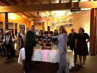 Im Anschluss an die kirchliche Feier trafen sich die Gäste in der Abtei-Brauerei Mettlach, um mit dem speziell zu diesem Anlass gebrauten Hubertus-Bockbier auf das Hubertusfest anzustoßen. Jagdvorsteher Kiefer dankte Anke Schorn, von der Abtei-Brauerei mit ihrem Braumeister für ihr speziell für diesen Tag gebrautes „Hubertus-Bockbier“ bevor er gemeinsam mit Umweltministerin Petra Berg den traditionellen Fassanstich vornahm.