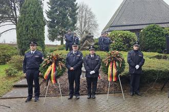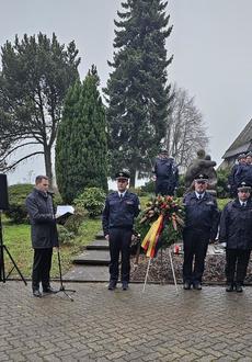 In Anwesenheit der Freiwilligen Feuerwehr legten Ortsvorsteher Frank Reinert und Bürgermeister Daniel Kiefer Kränze am Kriegerdenkmal der Gefallenen der beiden Weltkriege nieder. Würdig umrahmt wurde die Gedenkfeier vom Musikverein Weiten und dem Löschbezirk Weiten, der die Ehrenwache hielt.
