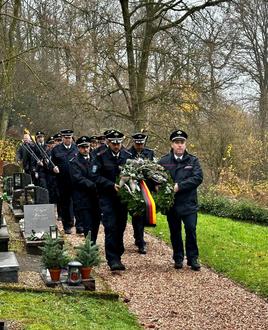 In Anwesenheit der Freiwilligen Feuerwehr legten der stellvertretende Ortsvorsteher Richard Thunack und Bürgermeister Daniel Kiefer Kränze am Kriegerdenkmal der Gefallenen der beiden Weltkriege nieder. Würdig umrahmt wurde die Gedenkfeier vom Musikverein 1851 Mettlach und dem Löschbezirk Mettlach, der die Ehrenwache hielt.
