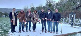 Das Foto zeigt von l. n. r.: Pfarrer Schmitt, Vertreter d. Umweltministeriums Alfred Hoffmann, Landrätin (Merzig-Wadern) Daniela Schlegel-Friedrich, 1. Vorsitzender Förder- & Trägerverein Wehingen e.V. Thomas Ollinger, 2. Beigeordneter der Gemeinde Mettlach Rainer Borens, Landtagsabgeordneter Stefan Thielen