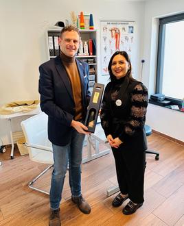 Am vergangenen Sonntag gratulierte Bürgermeister Daniel Kiefer herzlich zum 5-jährigen Bestehen der Praxis für Ergotherapie Kurt in Orscholz. Anlässlich des Jubiläums hatte Inhaberin Nabet Kurt zusammen mit ihrem Praxisteam zu einen Tag der offenen Tür eingeladen. Neben einem vielseitigen Kuchenbuffet und Kinderanimation erwartete die Gäste das engagierte Team der Praxis und Stand Rede und Antwort zu aktuellen und zukünftigen Therapiemöglichkeiten. „Ich freue mich über das langjährige und erfolgreiche Bestehen Ihrer Praxis und wünsche weiterhin viel Erfolg und zufriedene Patienten in den kommenden Jahren“, so Bürgermeister Daniel Kiefer.