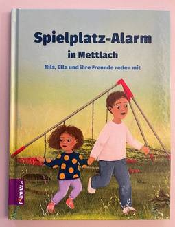 Zur Geschichte des Buches: „Ein Sturm hat den Spielplatz in der Gemeinde Mettlach zerstört! Der muss schnell wieder aufgebaut werden, finden Ella, Nils und ihre Freunde. Aber das ist gar nicht so einfach. Bürgermeister Daniel Kiefer nimmt die Kinder mit auf dem Weg von den ersten Wünschen über die Planung und die Abstimmung im Gemeinderat. Doch manche Nachbarn wollen keinen neuen Spielplatz. Ob Bürgermeister Kiefer eine Lösung findet, mit der alle glücklich sind?