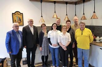 Ortsvorsteher Heiner Thul, Bernhard Schneider, Ursula Friese, Blutspendebeauftragte plus 2. Vorsitzende DRK Ortsverein Mettlach Frau Geiß, 1. Beigeordneter Manuel Kerber (hinten), Marita Schütz (hinten), 1. Vorsitzende des DRK Ortsvereins Mettlach Frau Schumacher, Gerhard Steies, Ernst Loch