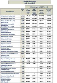 zuletzt geändert durch Gemeinderatsbeschluss vom 19.03.2024 zur Anpassung der Nutzungsentgelte ab dem 01.01.2025.