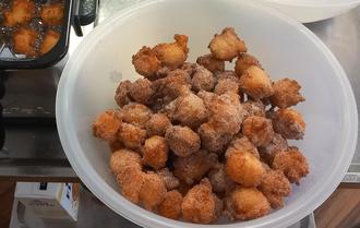Kulinarisch ging es über die gesamte Faschingszeit weiter. So wurden immer wieder „Onnenmaisjer“ (Berliner) gebacken, die reißenden Absatz fanden. Einige Bewohner*innen schauten sich am Sonntag gemeinsam den Fastnachtsumzug an. Begeistert wurde in diesen närrischen Tagen immer wieder zu Fastnachtsmusik geschunkelt und lautstark mitgesungen. Die närrische Zeit findet ihren Abschluss im Aschermittwoch, dem Beginn der Fastenzeit. Dann gibt es traditionell von der Bewohnerschaft selbst eingelegte Heringe.